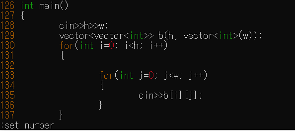 esc를 누르고 ":set number"를 누르면 왼쪽에 라인수가 나타난다.