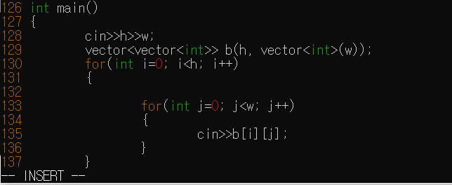 그리고 다시 esc를 누르고 i를 눌러 insert 상태로 바꾸면 라인이 나타난 상태에서 입력할 수 있다.