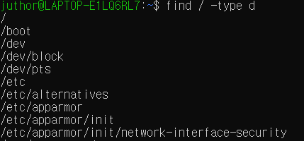| find / -type d | root 경로에서 "디렉토리"만 모두 출력![]() |