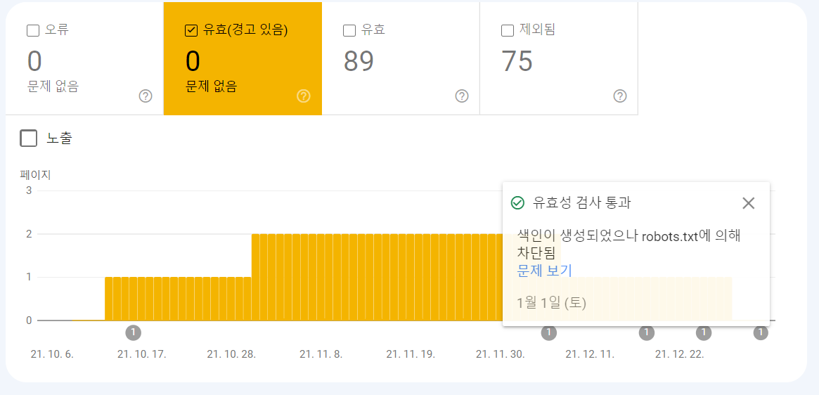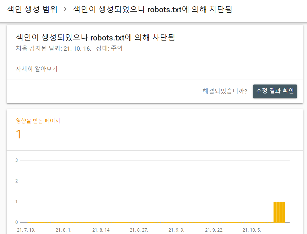 아래 사진으로 나와있는데, 색인 생성 범위에서 문제가 발견되었다고 했고,