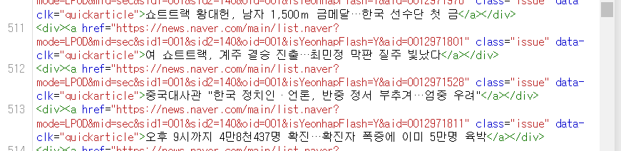 열어보면 아래처럼 html 소스들이 저장 되어있음을 확인할 수 있다.