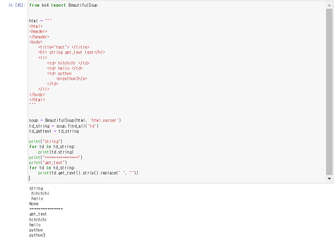 | 하위테그까지 들고오려면 get_text 쓰는 것이 좋음 | 정확하게 또 명시적으로, 정석대로 원한다면 string이 좋음 |