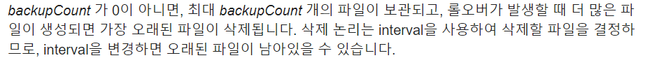 backupCount=0, # 몇 개의 파일을 backup 할 것 인지