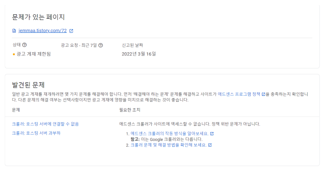 구글애드센스 크롤러 호스팅 서버 과부하 문제 해결 방법은 "기다림"이다.