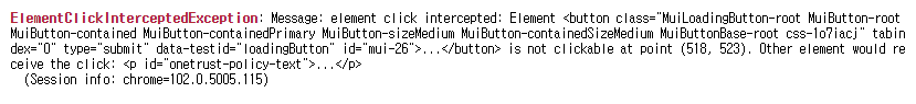 버튼 클릭하는 과정이 있는데, 클릭이 되지 않는 현상이 발생했다.