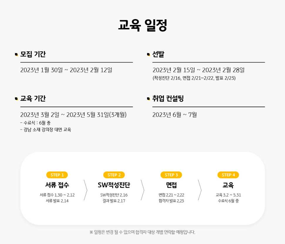 - 2023 봄학기 기준 졸업예정자, 교육기간 중 전일 교육 가능한 자