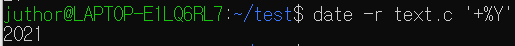 연도만 알고 싶으면 다음과 같이 파일명 뒤에 옵션 '+%Y(대문자'를 추가하면 된다.