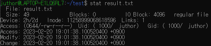 3. stat [파일이름]을 통한 atime, ctime, mtime 및 파일 상태 확인