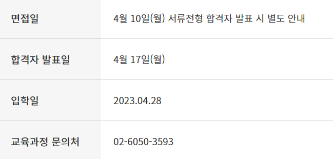 - 표에는 2023.04.17(월) 예정이라고 적혀 있는데, 아래 선발 프로세스에는 04.18까지라고 적혀있다.