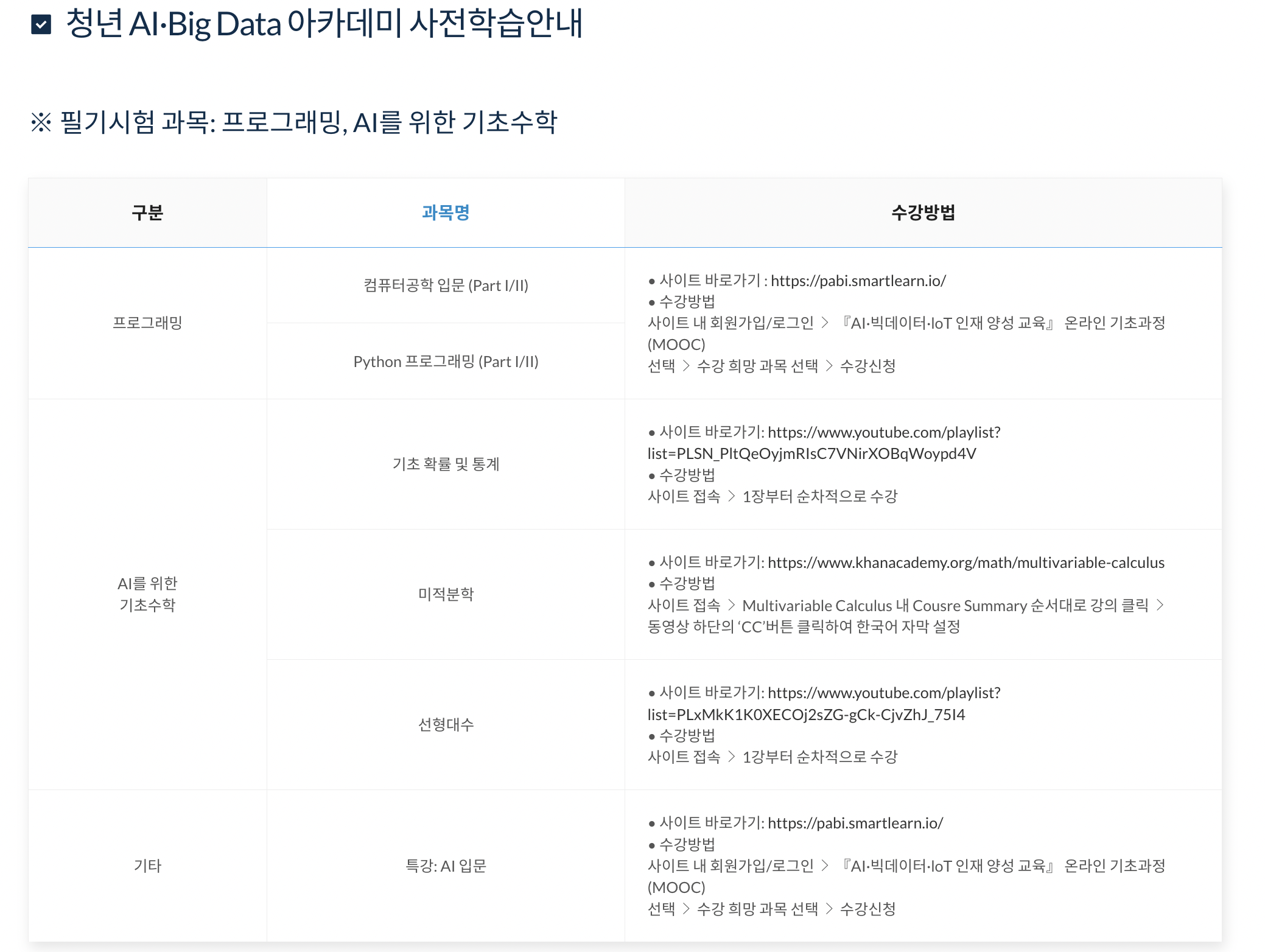 - 전공자/비전공자 무관한게 지원 가능. 다만 AI & BigData에 관심을 가지고 있는 교육후보생이면 가능