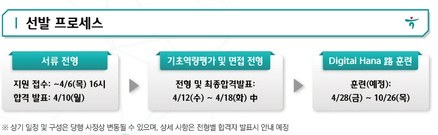 - 표에는 2023.04.17(월) 예정이라고 적혀 있는데, 아래 선발 프로세스에는 04.18까지라고 적혀있다.
