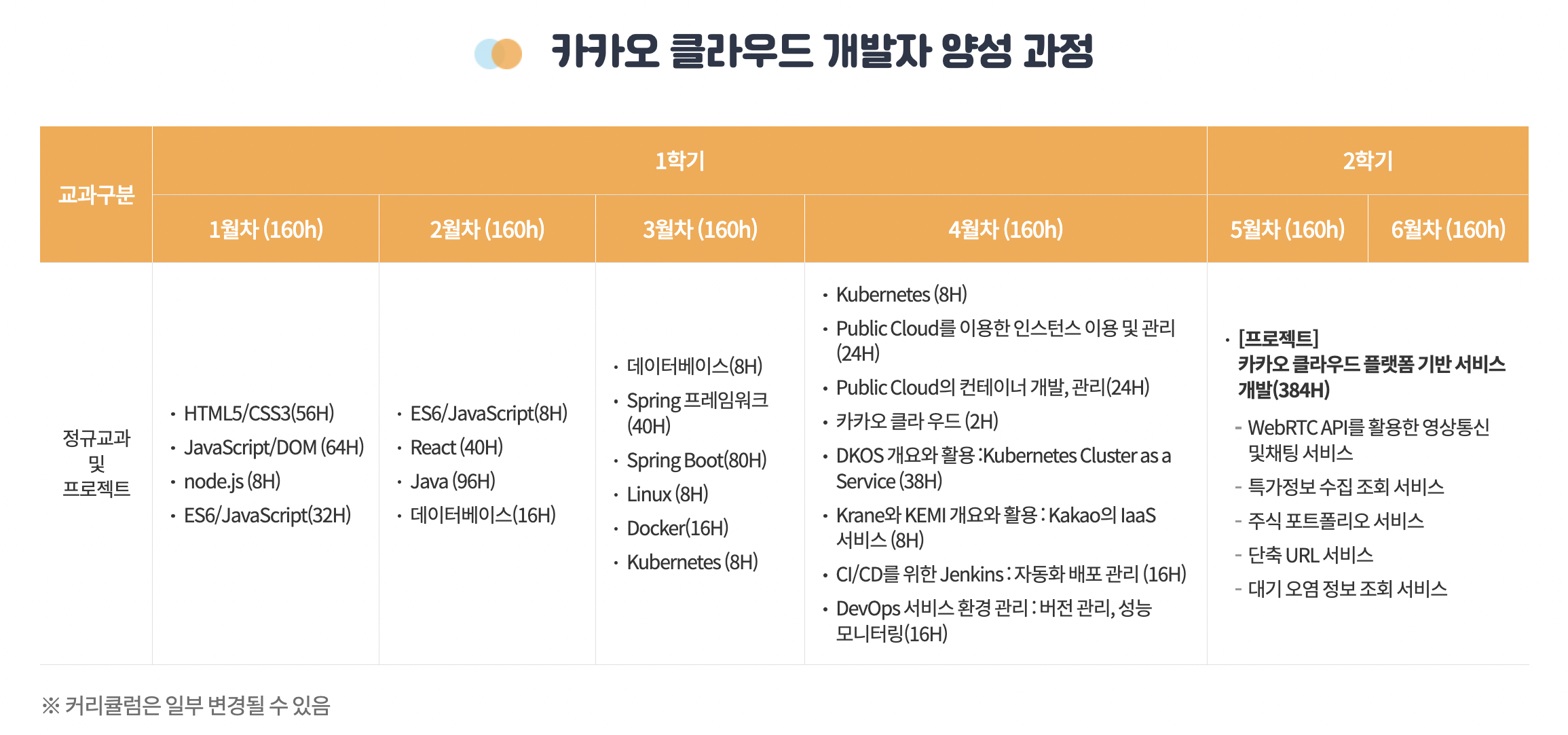 - 전체적인 교육과정을 표로 정리했던데, 여기서 개발자 클래스와 엔지니어 클래스 교육과정이 다르다는 걸 느낄 수 있다.